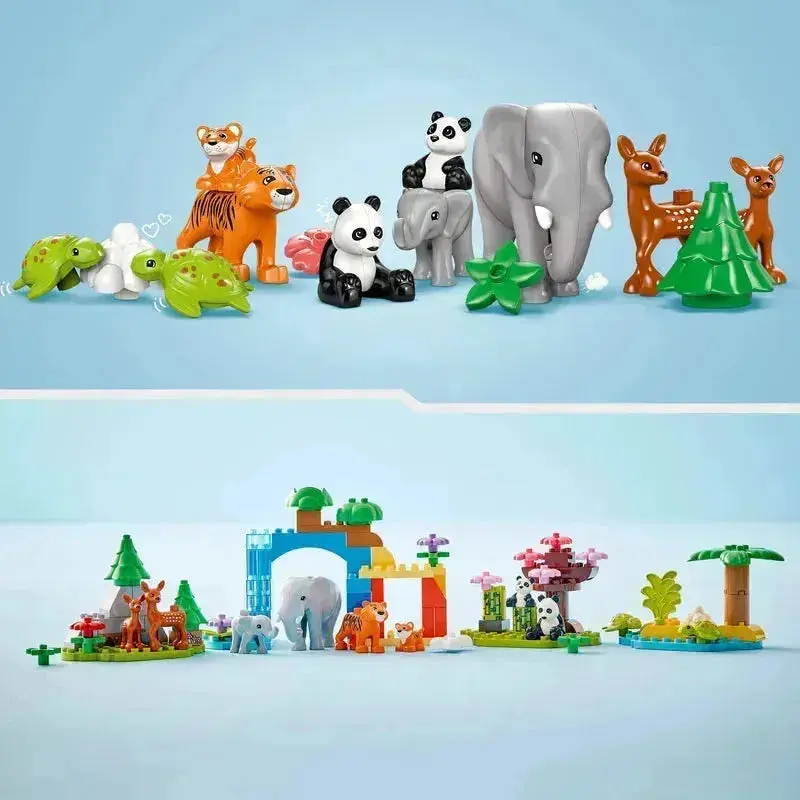 Met deze veelzijdige LEGO DUPLO set kunnen jonge ontdekkers hun eigen safaripark creëren. Bouw een olifantsfamilie, een leeuwenfamilie of een giraffenfamilie, of combineer de elementen voor eindeloze speelmogelijkheden. Deze set is perfect voor kinderen die van dieren en bouwen houden.