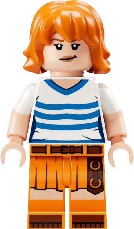 Luffy bevindt zich op het boegbeeld van een schaap aan de voorzijde van schip, waaronder kanon te vinden is. Zoroant traint op het dek, terwijl N het roer bedient aan de achterzijde, haar geliefde mandarijnenbomen op het dek staan. Usopp klimt in de masten en houdt de wacht vanuit het kraaiennest, en Sanji brengt pannen naar de keuken via de trap. Inclusief 4 ‘Wanted’-posters. Met de LEGO Builder kunnen kinderen inzoomen, modellen in 3D draaien en hun voortgang bijhouden. De set bevat 1376 onderdelen.