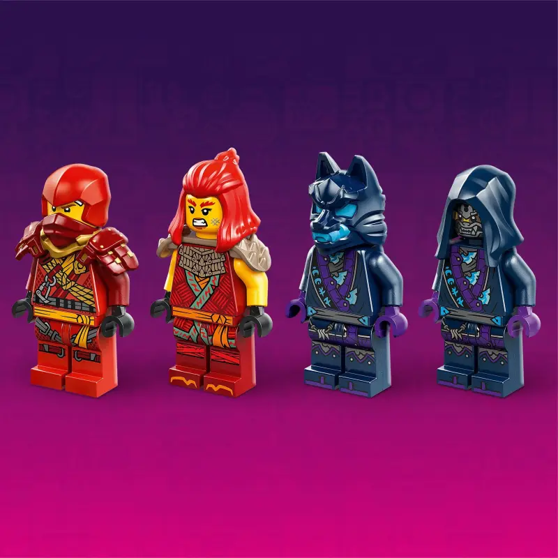 Dit LEGO bouwspeelgoed voor kinderen wordt geleverd met 4 minifiguren: Klimmer Kai met een katana, Wyldfyre met een katana, een Wolvenmasker bewaker met een speer en een Wolvenmasker strijder met een zwaard. De set bevat ook een klein bosgedeelte om personages in de val te lokken, een krachtig schietvoertuig dat een grote pijl kan afvuren en 3 kleine vlamelementen.